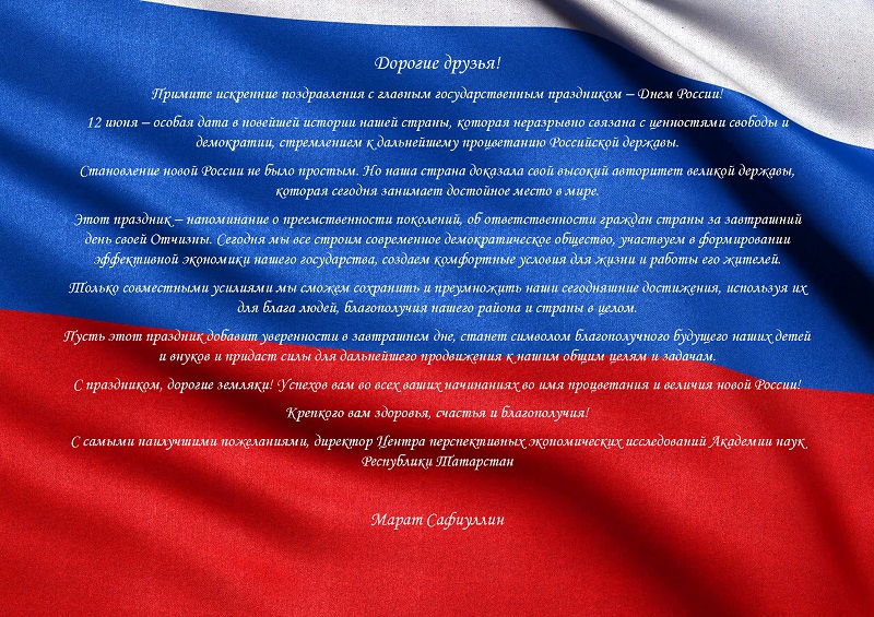 Примите искренние поздравления с главным государственным праздником – Днем России!
