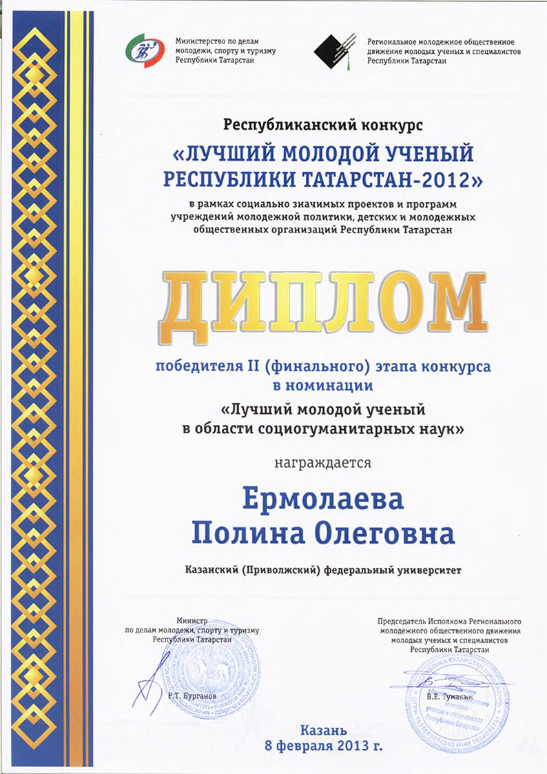 Центр перспективных экономических исследований Академии наук Республики Татарстан поздравляет начальника отдела качественных исследований, к.с.н., Полину Ермолаеву с победой в конкурсе в номинации "Лучший молодой ученый в области социо-гуманитарных наук" и желает дальнейшего профессионального и духовного роста!