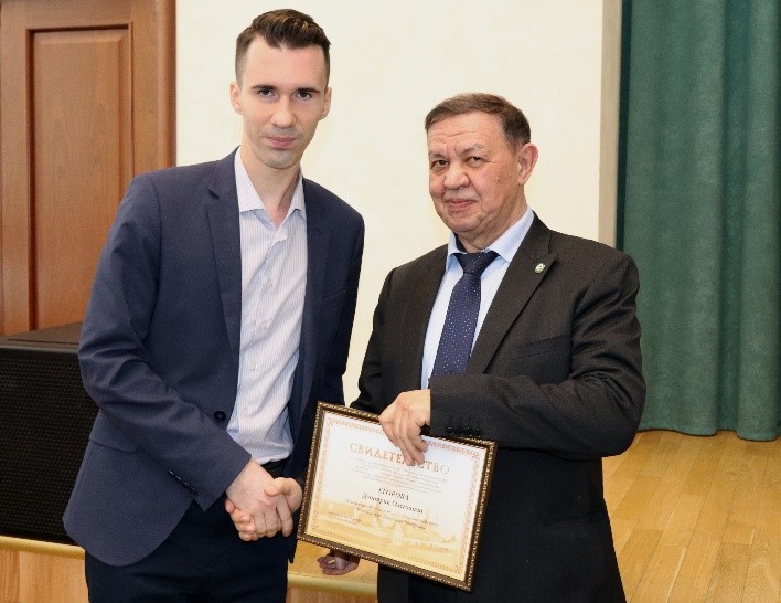 В Академии наук Республики Татарстан в рамках Общего отчетного собрания состоялось награждение победителей конкурса молодежных научных грантов и премий РТ. Среди награжденных - молодой ученый ГБУ «Центр перспективных экономических исследований Академии наук Республики Татарстан» Егоров Дмитрий Олегович.