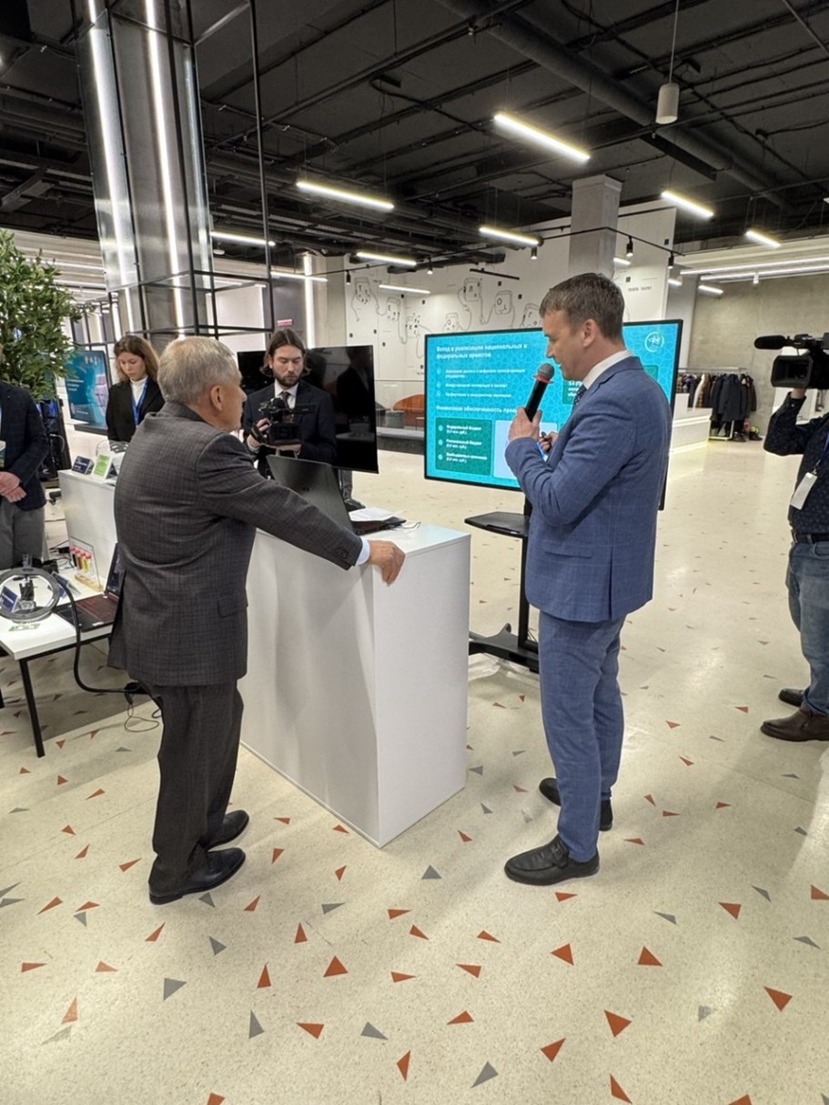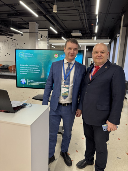 Мероприятие также посетил Раис Республики Татарстан Р.Н. Минниханов, свой проект «Блокчейн – перспективная технология международных расчетов в условиях санкций и недружественного внешнего окружения» ему презентовал Руководитель (директор) Центра Ельшин Леонид Алексеевич.