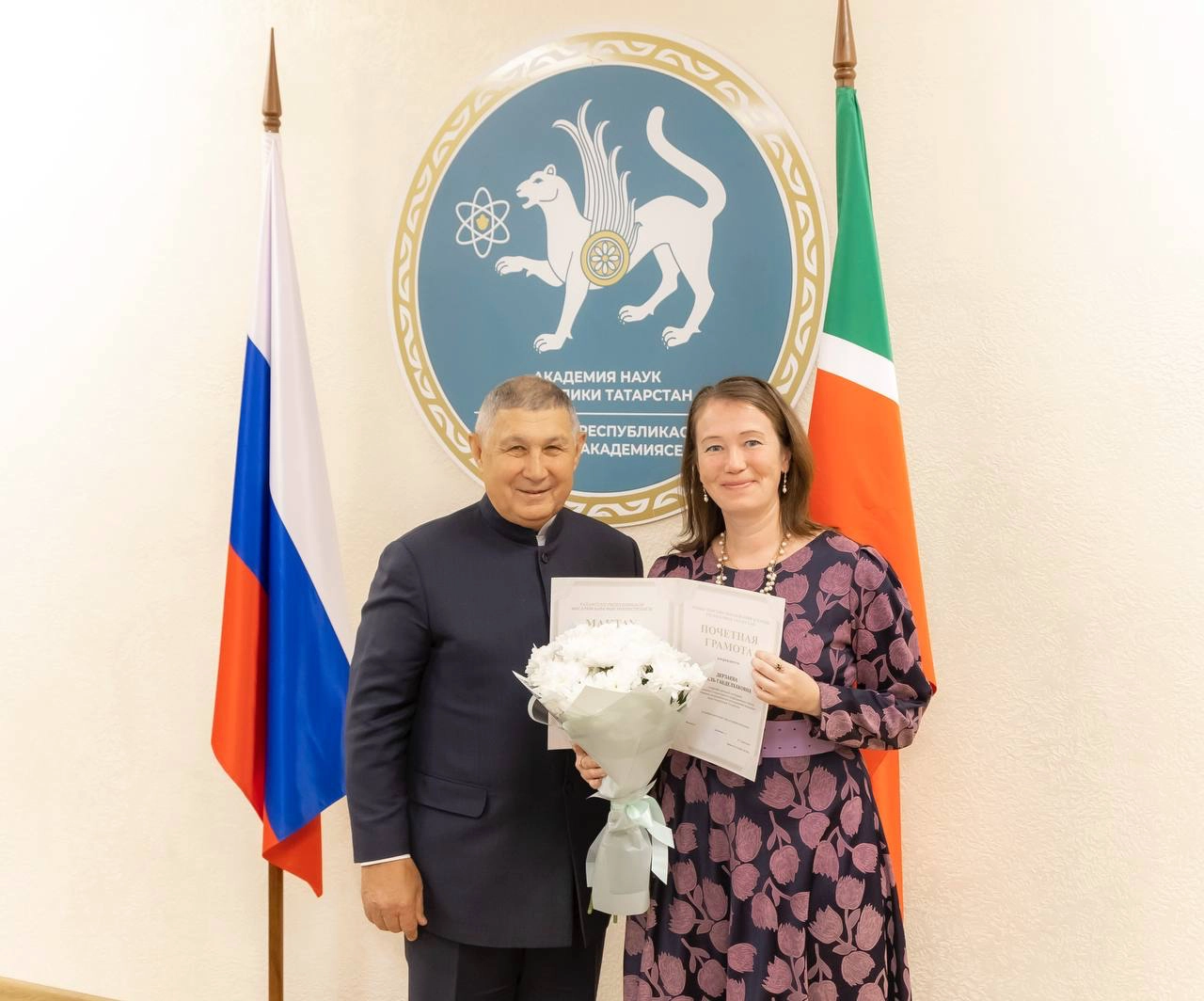 В рамках заседания президиума Академии наук Республики Татарстан, состоявшегося 26 января 2026 года, старший научный сотрудник ОСП «Центр перспективных экономических исследований Академии наук Республики Татарстан» Дерзаева Гузель Габделхаковна удостоена ведомственной награды — Почётной грамоты Министерства образования и науки Республики Татарстан. Гузель Габделхаковна является высококвалифицированным специалистом и талантливым ученым, чья деятельность заслуживает высокого признания.