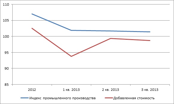 Указанный рост добавленной стоимости в обрабатывающей промышленности достигнут за счет производства нефтепродуктов (104,2%), резиновых и пластмассовых изделий (126%), транспортных средств (104,7%), а так же ряда других. В то же время, в химическом производстве зафиксирован спад добавленной стоимости на 8,6%.