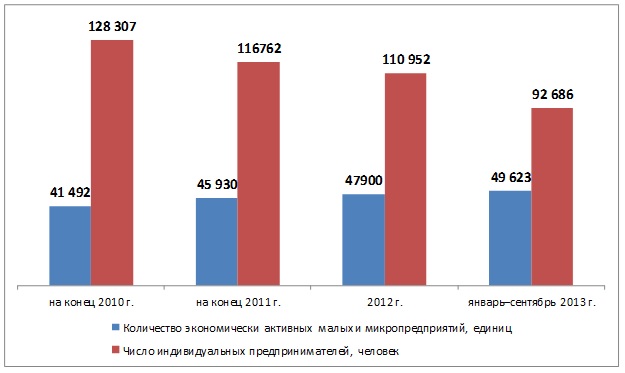 Ситуация в предпринимательском секторе республике остается достаточно противоречивой. [1] За девять месяцев т.г. зафиксирован рост числа экономически активных малых и микропредприятий на 1,7 тыс.ед. С конца 2010 года их численность возросла на 19,6%.