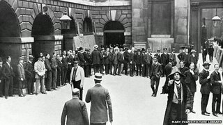 Очередь в Банк Англии в июле 1914 г. для обмена нот на золото