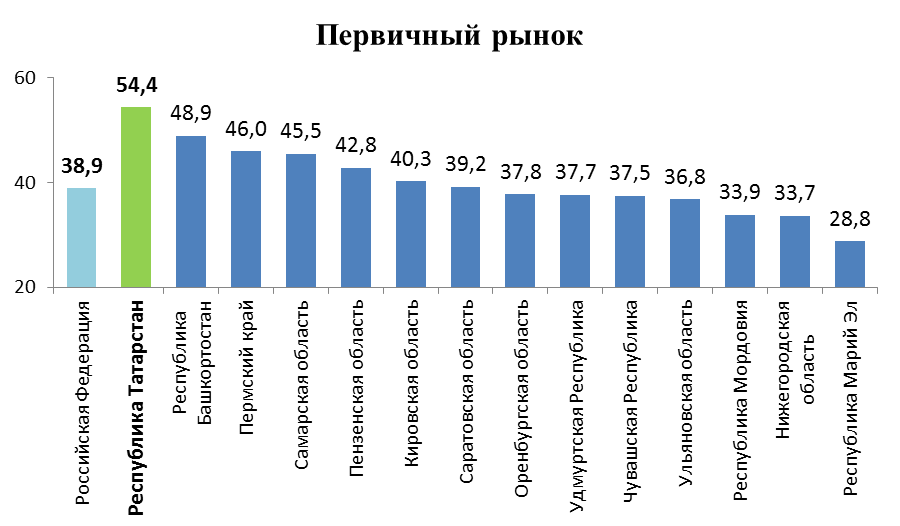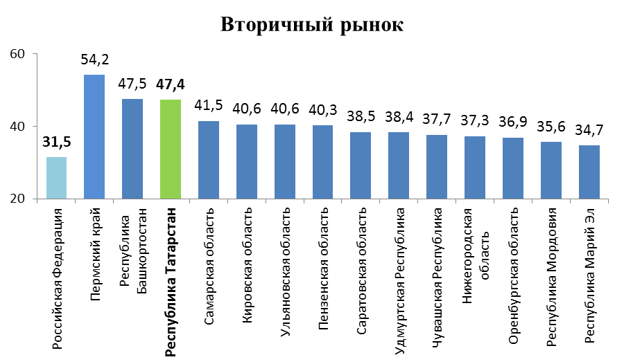 В 2010 году по сравнению с 2009 годом традиционно опережающими темпами росли цены на жилье на вторичном рынке – 109,6% против 103,7% - на первичном. По средней цене за 1 кв.м на первичном рынке Республика Татарстан в 2010 году занимала 8 место среди регионов ПФО, на вторичном рынке - 11 место [1]. Самое дорогое жильё среди регионов ПФО как на первичном, так и на вторичном рынках – в Самарской и Нижегородской областях, а также в Республике Башкортостан.