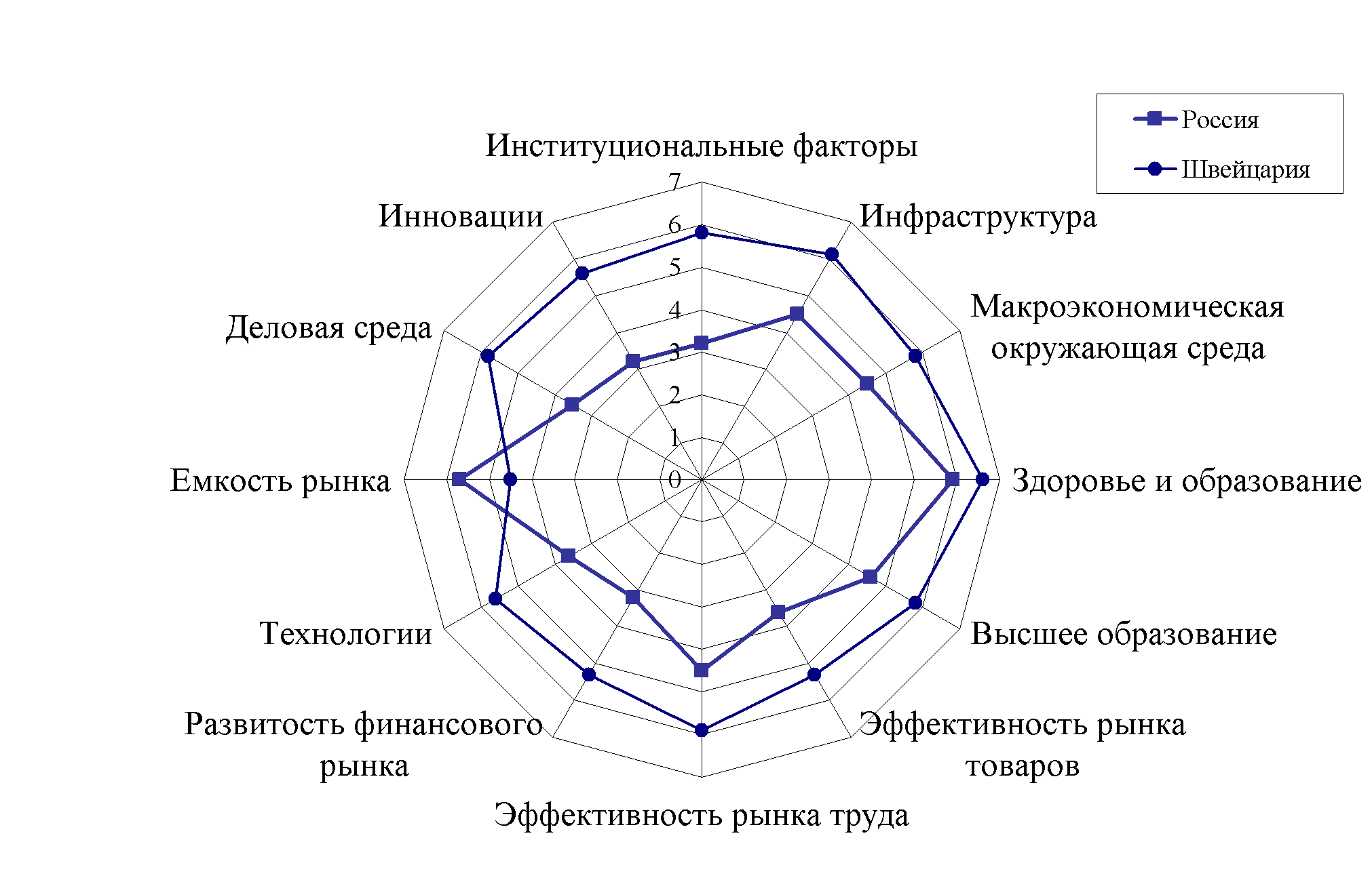 Рис. 1. Эннеаграмма факторов индекса глобальной конкурентоспособности по данным Всемирного экономического форума за 2010-2011 гг.